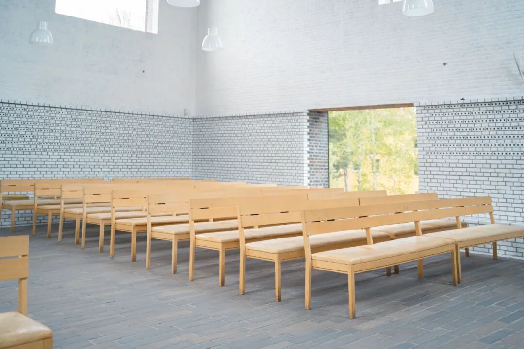 再次坐在天命之年的 Johan Celsing 设计的阿尔斯塔教堂 (Årsta Church)中,张永和感到一种久违的舒适和感动。窗外的白云触手可及,仿佛近在眼前——这是因为有空腔的砖墙导致窗与框分层错开,所以人从室内通过“无框窗”看向室外时,有内外连通的神奇体验感。在这里窗不仅为了采光,也通过户外景象传递了一种抽象的精神内涵。
