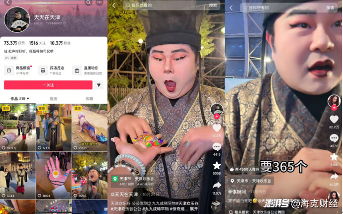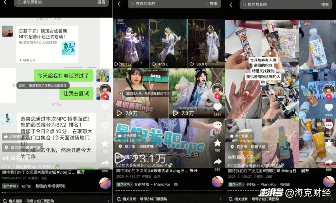 曾在天津欢乐谷、长沙世界之窗等多个景区游玩的00后小陈对海克财经表示,她开始只是将与NPC的互动发到微信朋友圈,结果“引来哇声一片”,由此才决定发到抖音;这些互动视频有的点赞量能够超过1万,远高于她平时的个人生活内容视频。
