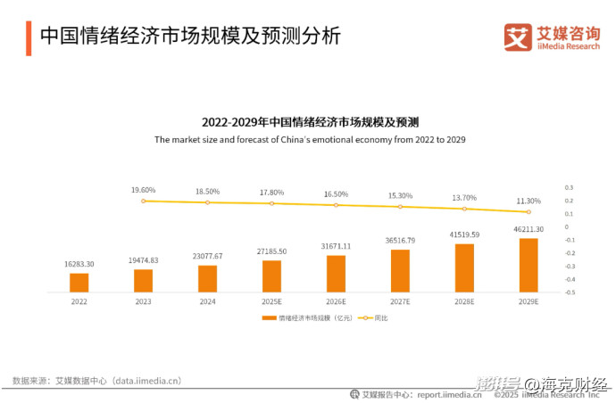 据调研机构艾媒咨询数据,国内情绪经济市场规模持续增长,2024年为2.31万亿元,2025年将增长至2.72万亿元,2029年可达4.62万亿元,CAGR(年复合增长率)为14.9%;在潮玩、体验、宠物、疗愈等情绪消费领域中,包含NPC互动景区在内的沉浸式体验经济,为消费者偏好第一位。