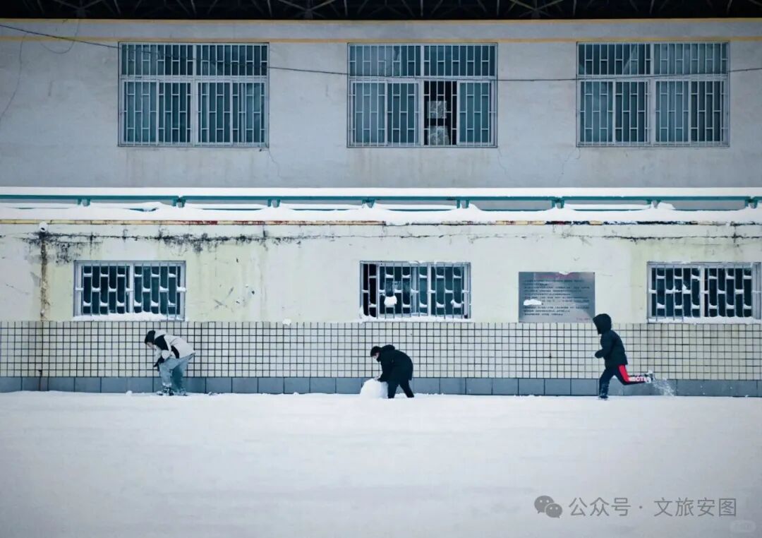 也是学生时代,落满雪的操场上,踩着雪追闹的暖忆。