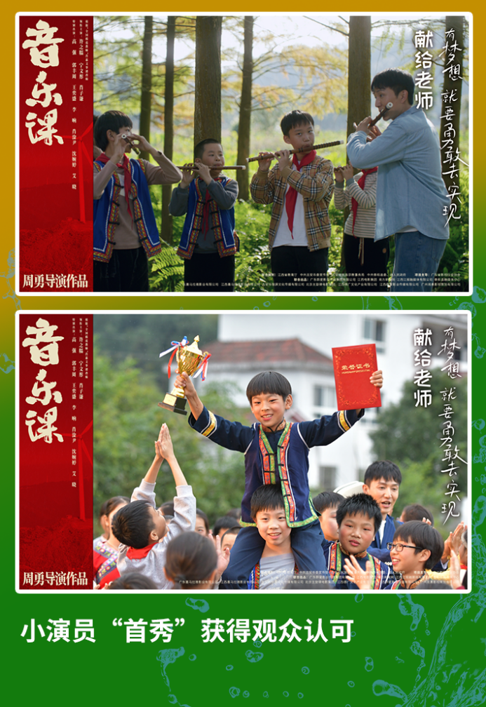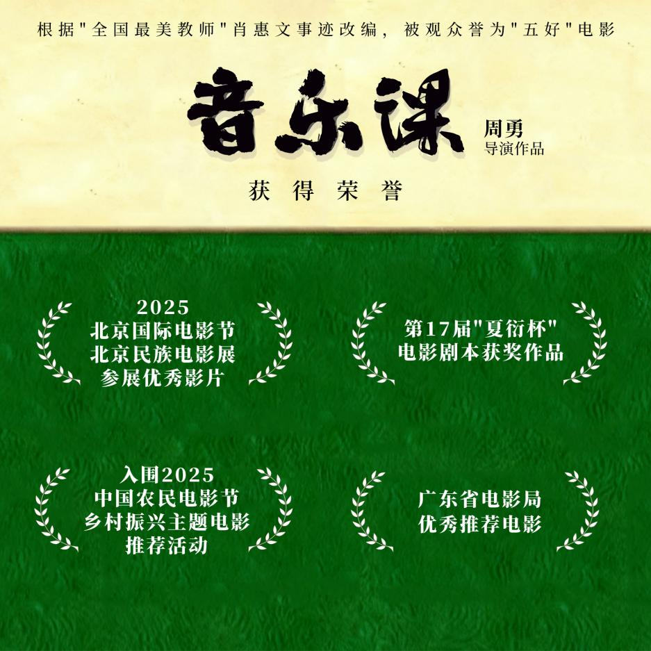 近段时间,由南方新闻网、广东群星影业传媒集团等单位出品,江西省教育厅联合摄制,根据 “全国最美教师”——江西泰和县水槎乡中心小学音乐老师肖惠文真实事迹改编,华表奖导演周勇继《我的体育老师》之后又一力作,许之糯、肖子谦、肖淦尹领衔主演的《音乐课》,虽没有流量明星的加持、没有大制作和大的宣传,但依靠电影品质赢得观众的认可。该片除在院线上映外,片方还开辟了另外一条途径,在拍摄地——江西走进大、中、小学进校园巡映,累计放映近3000场,取得了良好的社会和经济效益;此外,影片还斩获了多项荣誉:其剧本荣获第 17 届“夏衍”杯电影剧本“成长电影剧本”奖;2024 年,成为广东省电影局优秀推介影片;2025年,入围北京国际电影节北京民族电影展,并获 “优秀展映影片”等。该片于2024年10月15日起全国公映,密钥也经过13次延期,这次延长期限至12月16日。据猫眼专业版显示,影片长线上映一年多,登上2025国产儿童影片内地票房冠军。还没有来得及观看《音乐课》的大小朋友要抓紧时间了,赶紧和家人或老师一起走进影院,去看看这部感人至深的电影。