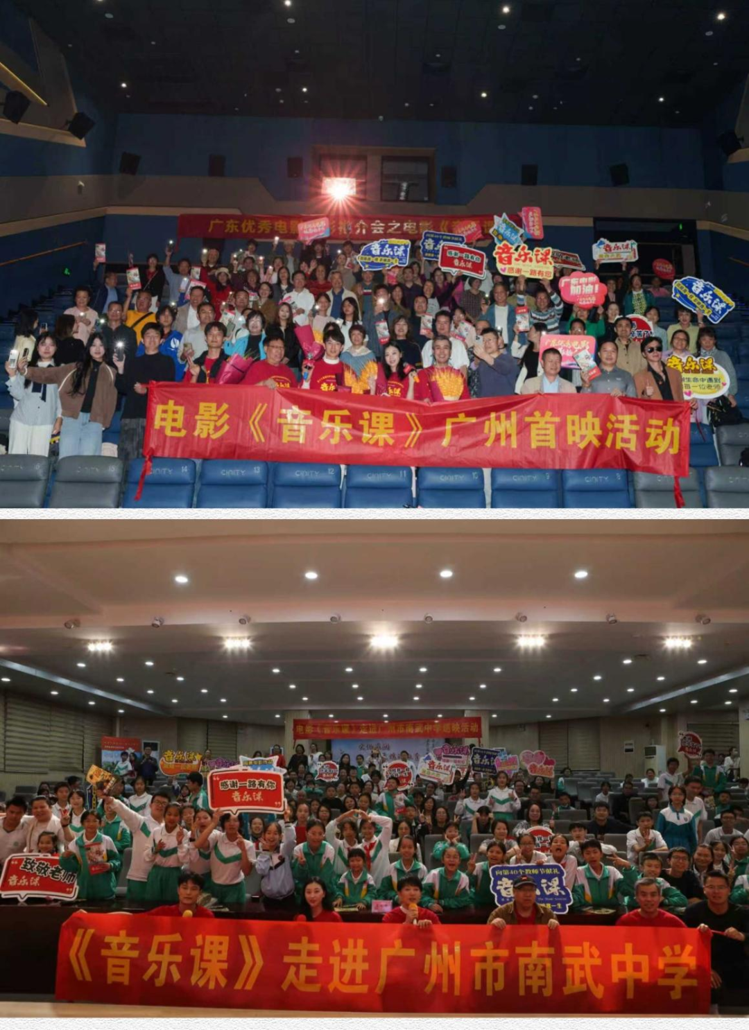 片方在举办广东优秀电影观影推介会之《音乐课》专场和走进广州市南武中学、华南农业大学珠江学院等多场校园巡映之后,影片在广州也引起了强烈反响,特别在教育界、文艺界赢得了双重口碑。不少文艺界专家认为,影片不仅故事流畅、画面唯美,更以真挚的情感戳中人心,观众给予的“五好”电影的美誉(即“好笑、好哭、好真、好暖、好美”)实至名归,“该片颠覆了我们对乡村题材电影的认知”。教育界认为,影片致敬了乡村教师的坚守,传递出“每个孩子都值得被音乐照亮”的深刻主题,激发了广大教师及大学生“想成为像影片中一样的老师”。多位教育局长和校长表示,这么一部富有教育情怀与艺术感染力的优秀电影,值得被更多的学校、更多的师生看到。