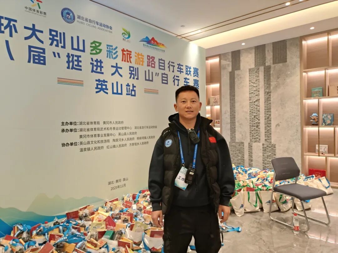 志愿者们紧锣密鼓地准备物资包并为选手发放,传递出主办方满满的诚意。赛事负责人向明表示,“我们联赛组委会定制了专属水壶、袖套、暖贴等,英山站作为收官站,还为大家准备了英山特产云雾茶、三伏膏贴、茯苓千层糕和文创笔记本,以及四季花海的温泉门票,希望大家能顺利完赛并且享受这次英山旅途。”