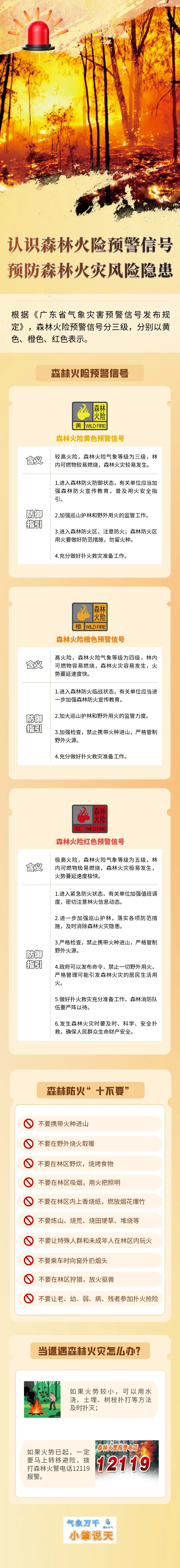 目前全市森林火险红色预警信号正在生效,天气持续干燥,请注意森林防火和家居用火用电安全。