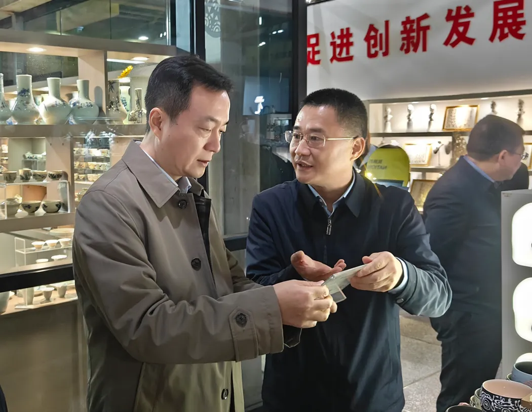 在景德镇学习考察期间,孔涛一行先后走访景德镇陶瓷美术家协会、陶阳里历史文化街区、中国陶瓷博物馆及陶溪川文创街区,系统借鉴“千年瓷都”在文化遗产保护、文博场馆运营、文旅业态创新、产业生态构建与知识产权保护等方面的实践经验。在陶阳里历史文化街区,孔涛详细了解其秉持“保护第一、修旧如旧”理念,将明清窑址、传统民居与现代商业有机融合,打造沉浸式文化体验场景的成功经验。在陶溪川文创街区,孔涛要求相关部门认真学习“旧工厂改造+文创孵化”模式,立足铜陵工业旅游资源禀赋,做精做活“铜文化”产业,推动文旅深度融合发展。
