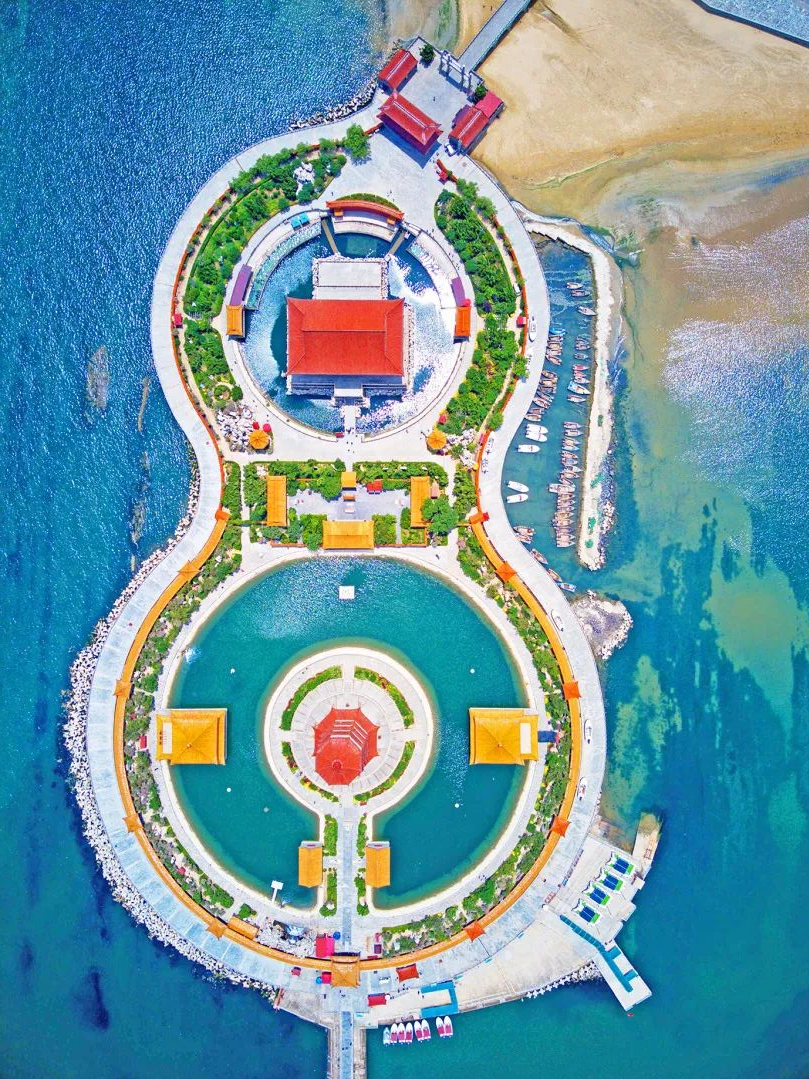 在蓬莱,有一处让八仙传说触手可及的地方——八仙过海景区。这座形如宝葫芦横卧碧海的建筑群,完美融合了古典建筑的精髓与艺术园林的雅致,将飘渺仙境化为可游可赏的现实画卷。