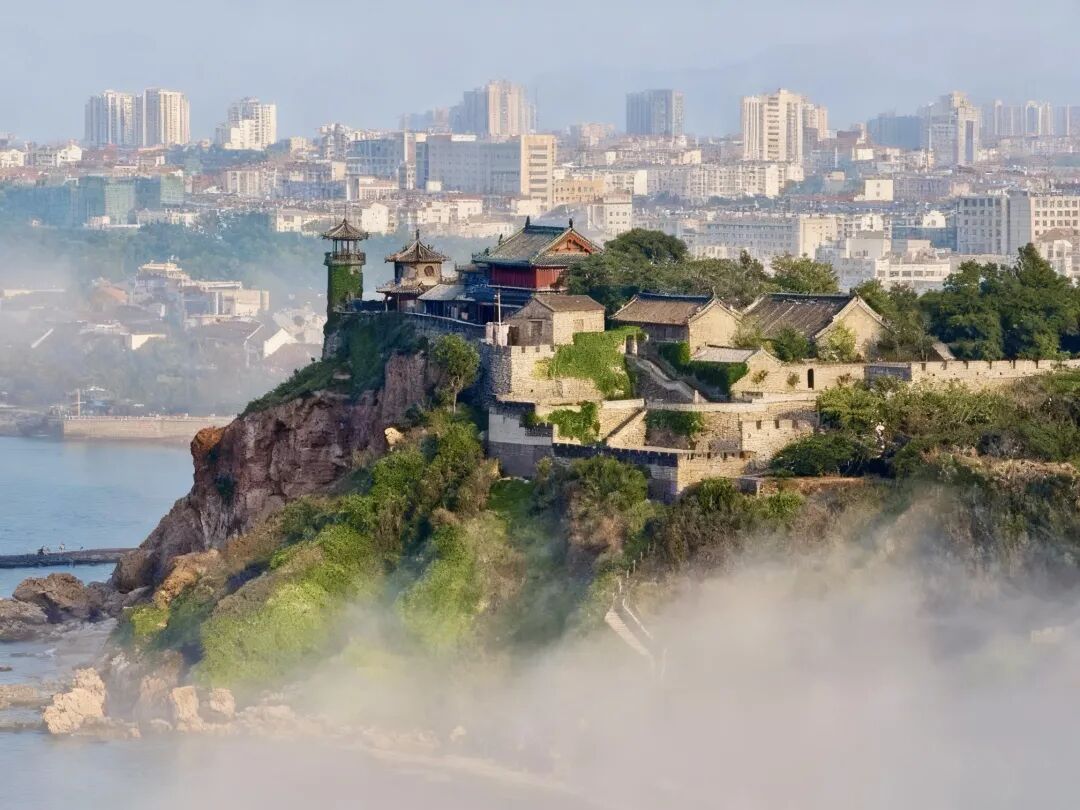 沿着青石台阶缓缓而上,每一步都仿佛在穿越时空。登临阁顶,凭栏远眺,黄渤海分界线的神奇景象尽收眼底。