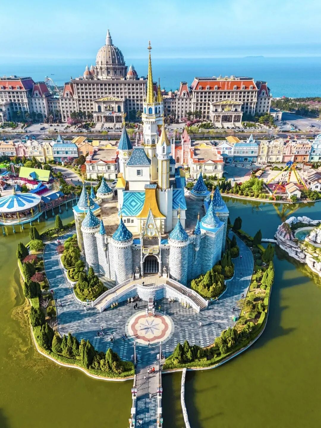 巍峨的天鹅堡矗立于蓝天之下,尖塔直指云霄,石墙承载着无数童话梦。它并非远在欧洲,而是真切地坐落在蓬莱的海风与阳光里。在这里,东方仙境与西方童话完成了一场跨越时空的对话。