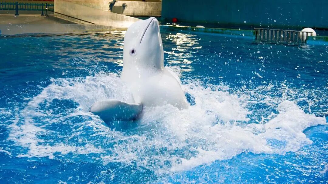还有令人难忘的是白鲸表演,这些来自北极的精灵通体雪白,额头隆起,嘴角微扬,天生一副笑脸。当它们在蔚蓝的水中起舞,发出空灵悦耳的鸣叫,那一刻,心都化了。