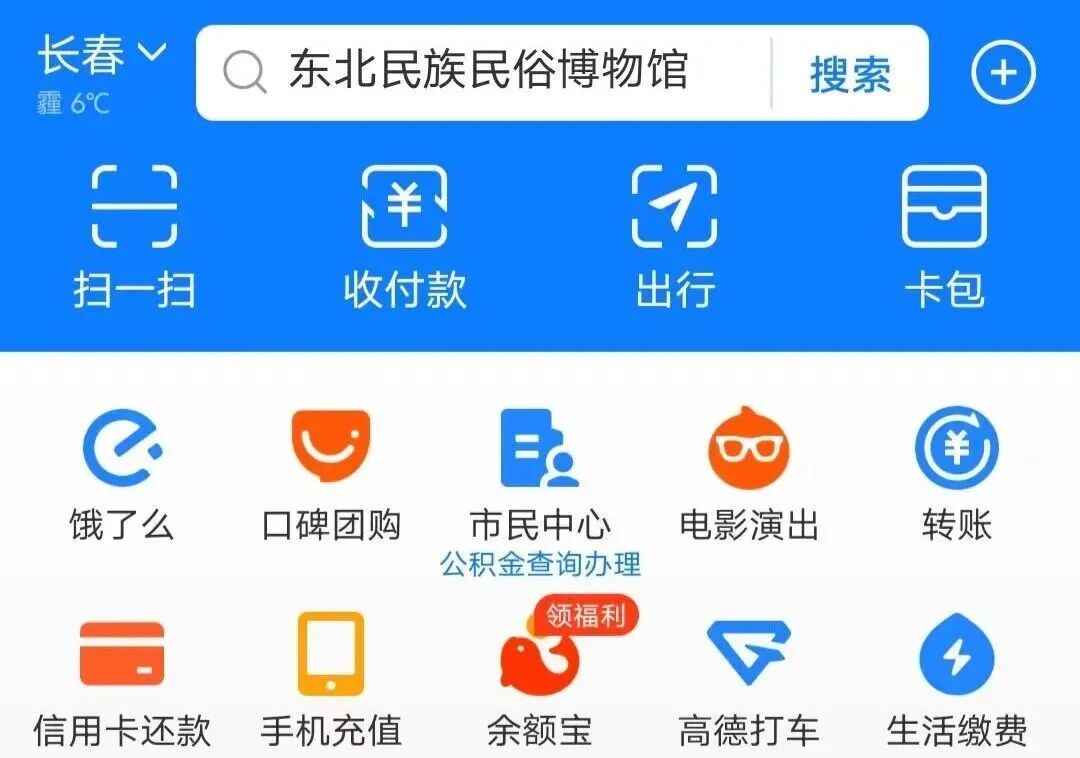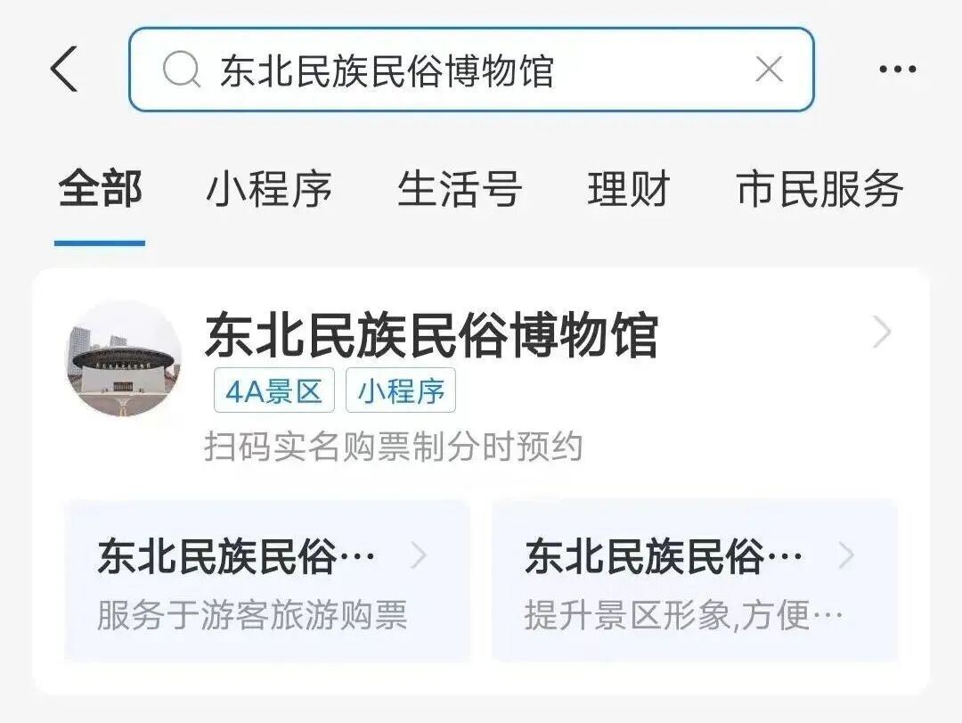 打开支付宝APP,搜索“东北民族民俗博物馆”,进入小程序。