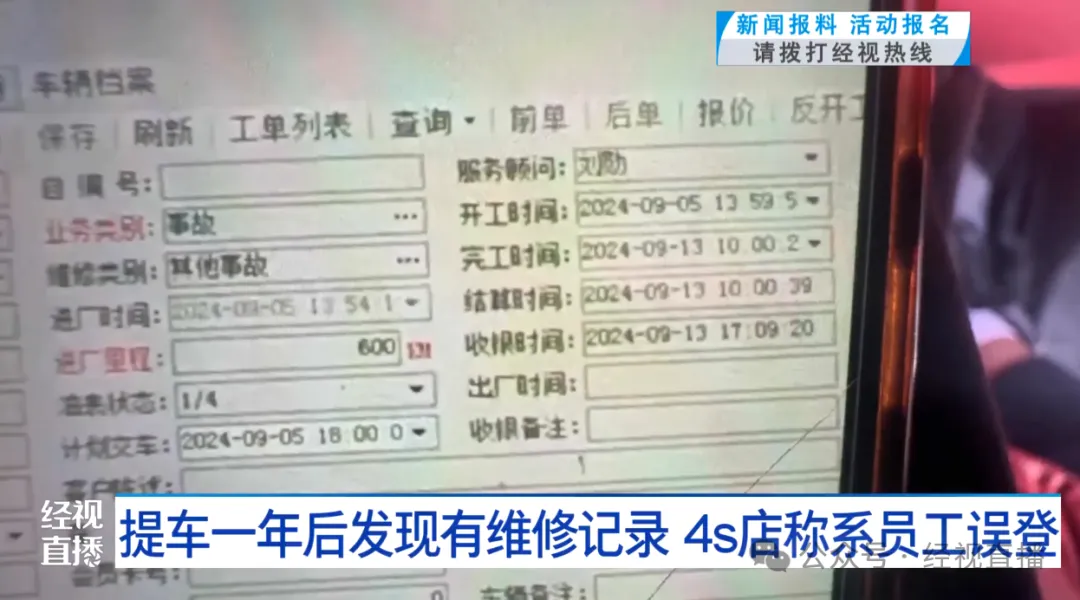 男子购新车一年后发现多次维修记录,车灯、前保险杠等都更换过,怀疑买到二手事故车,4s店回应:系员工将车辆编号输入错误