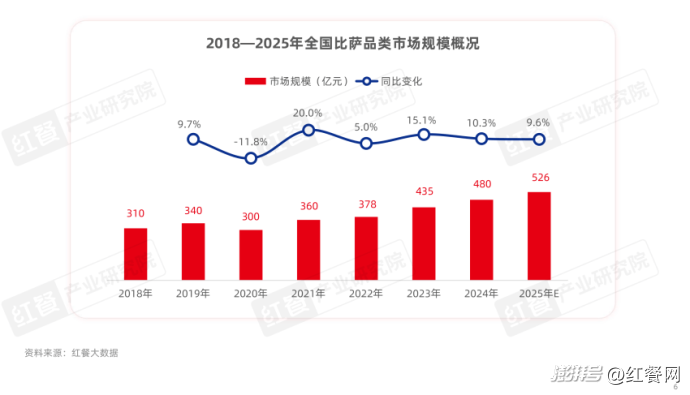 一边是披萨品牌在产品价格上,越来越注重性价比;另一边是下沉市场成为了品牌们开城掠地的主战场。双重驱动下,比萨品类市场规模保持着稳健增长态势。红餐大数据显示,2024年全国比萨品类市场规模达到480亿元,同比增长10.3%,预计2025年比萨品类市场规模将超过500亿元。
