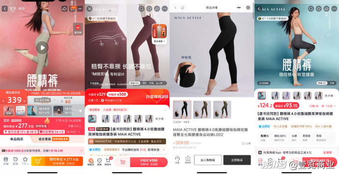 价格体系的混乱也引发不满,据壹览商业查询,2025年双十一期间,MAIA的核心单品“妖精裤”在天猫售价270元,抖音平台官网售价308元,品牌官网则达359元,而一些非官方渠道甚至能将价格打到两位数,悬殊的价差让消费者怀疑产品的真实价值,放弃即时购买,转而等待大促或低价渠道。
