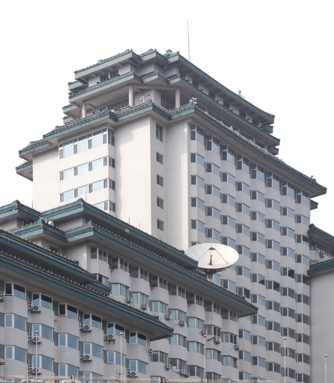 20世纪90年代的北京,有很多中式屋顶的大楼,算是首都的一道风景线。它们属于中华复兴式的后现代主义风格建筑,经典大屋檐,参考梁思成先生提出的新北京城中式大屋屋顶风格,因为这是中式建筑的标志。