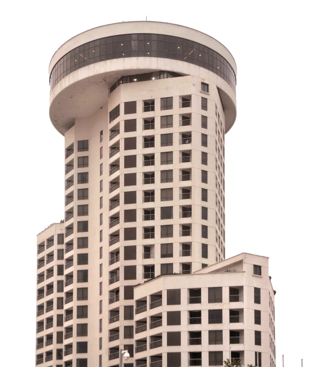 这是一座20世纪90年代建造的酒店,造型独具特色。顶部的半球状建筑很有后现代主义设计的风格。半球之内是一个多功能小剧场,可举办会议或精彩的演出。外部的观光电梯直达顶层,在这里可以饱览远方的壮丽景色。这样独特而巧妙的设计,在现实中实属罕见。