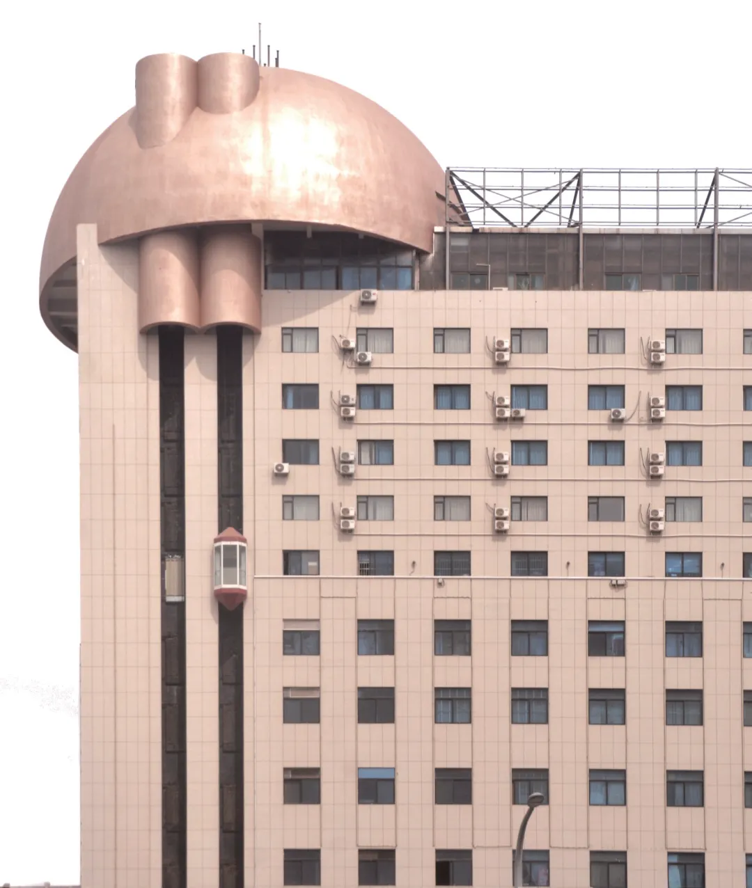 20世纪80年代末至21世纪初,中国城市的天际线被一批特征鲜明的建筑占据——蓝色玻璃幕墙覆盖立面,楼顶矗立着信号塔或碟形旋转餐厅,墙面装饰着彩色马赛克瓷砖。这些建筑,曾是一个时代对“现代化”最直观的诠释,记录着我们在经济腾飞初期对“国际大都会”的浪漫想象。