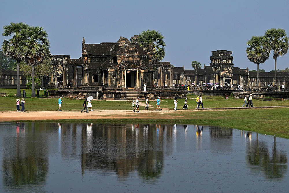 2025年3月15日,游客在柬埔寨暹粒省的吴哥窟参观。视觉中国 资料图