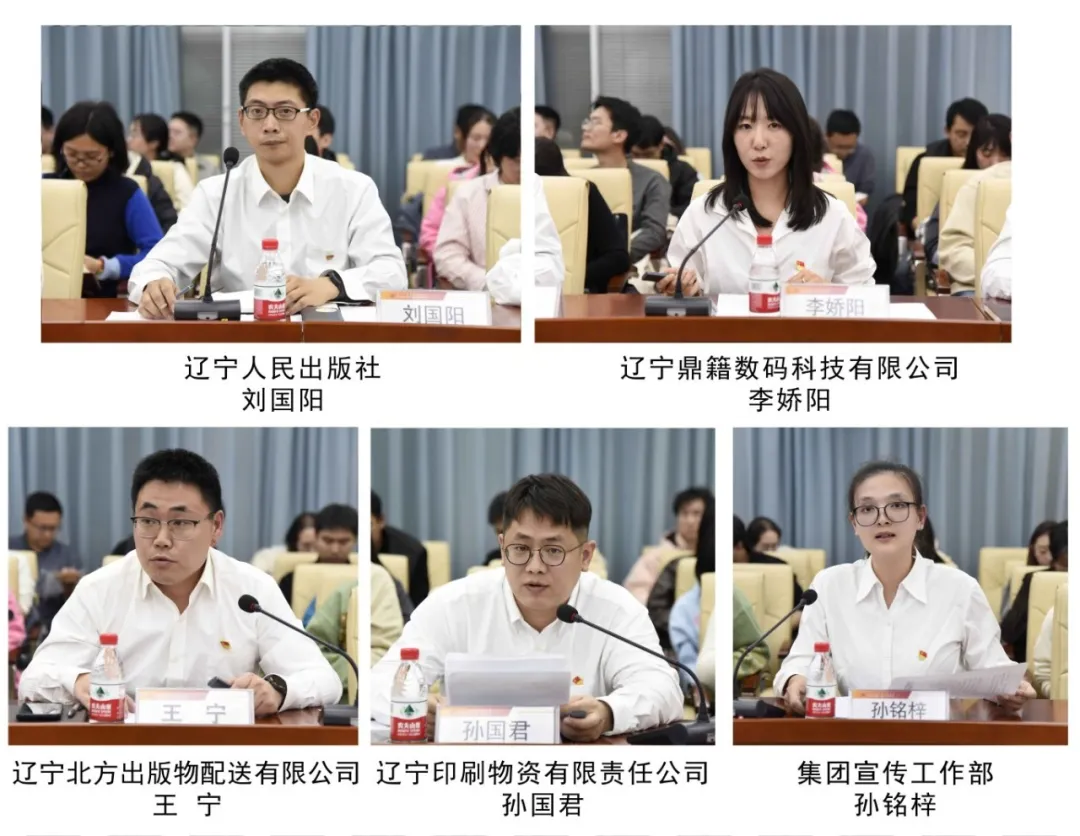 在贯彻落实党的二十届四中全会精神学习交流环节,集团编印发供管各领域的5名青年代表立足岗位实际谈学习心得与工作举措。来自万卷出版公司的王琪、辽宁新华印务有限公司的高小杭、新华书店北方图书城有限公司的王峥、辽宁印刷物资有限责任公司的王元石、集团党建工作部的孙雪松,围绕文化创新创造、传统印刷产业升级、数字化转型、文化传播提质增效、党建服务保障等方面,提出要以“人工智能+”激活出版创新,通过传承红色基因、弘扬工匠精神助力产业发展,立足专业实干坚守文化传播使命,强化党建引领凝聚青年担当,切实将全会精神转化为集团“十五五”高质量发展的具体实践。
