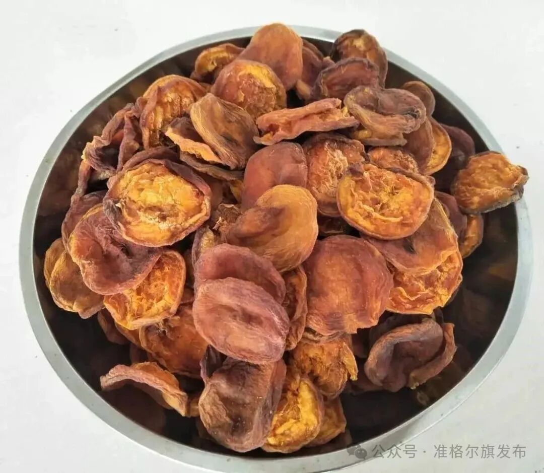 “吃不完的果果晒瓣瓣,临走你提上几串串。”正如这两句漫瀚调歌词所唱,因鲜果不易存放,早年农户们便想尽办法延长享用时长,晒制杏干便是绝佳方式。将成熟杏子掰成两半,置于自然光下风干,若保存得当,来年依旧风味不减,吃起来酸中带甜,满口生津。制作杏干无需复杂工艺,只需将成熟杏肉从果核上剥离,摊在阳光下晒至完全脱水,便可收纳保存。晾干的杏干通常装入老白布缝制的布袋,既能防潮,又能避免生虫。在乡人心中,杏干格外珍贵,亲人在外,总要设法捎去一包。相较于鲜果,杏干风味更独特,轻咬一口,浓郁的酸味中,透着绵长醇厚的甜。