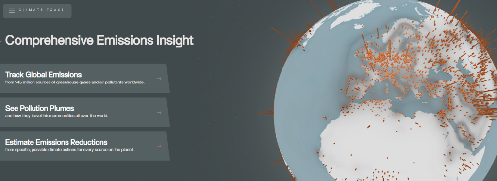 Climate TRACE(追踪气候变化的全球实时大气碳排放监测项目),该项目通过整合能源统计数据、卫星观测结果和人工智能技术,追踪全球煤炭、石油和天然气的燃烧量及其排放位置。