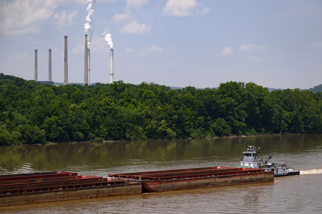 当地时间2025年6月12日,美国肯塔基州梅斯维尔,远处是斯珀洛克发电站。特朗普政府宣布计划取消对全国燃煤电厂温室气体排放和其他空气污染物的限制。视觉中国 图