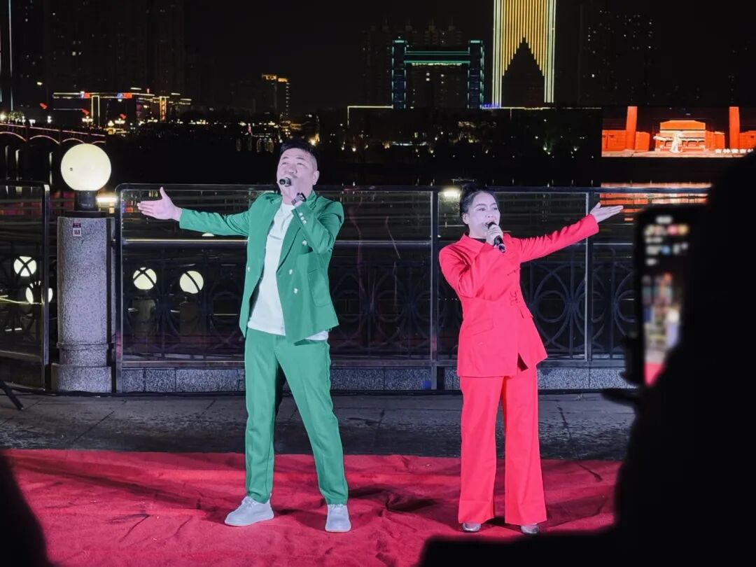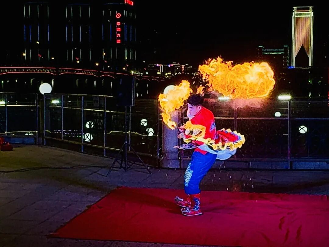霓虹点亮两岸,积雪的人行道成了观众席。前方不远,每周末的“雾凇冰雪季20周活动”正在实景中上演:身着各样服装的演员在历史建筑前吟唱,歌声混着江风飘来;舞者于飘雪中旋转,衣袂与雪片齐飞。你就站在街边,成为戏剧的一部分。这里没有固定的座位与门票,整座城市都是你的剧场。