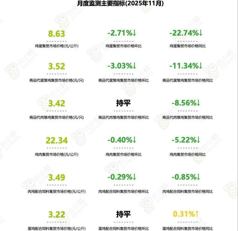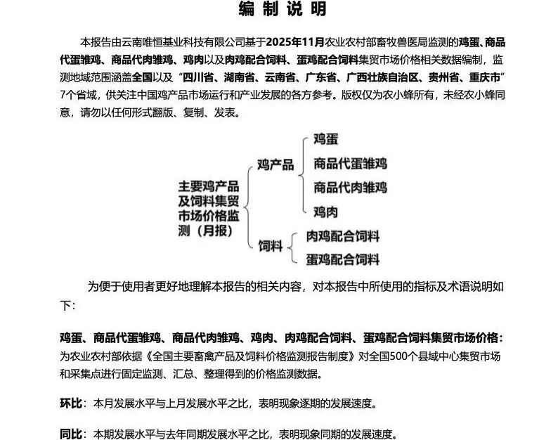 原标题:《全国主要鸡产品及饲料集贸市场价格监测月报(2025年11月)》