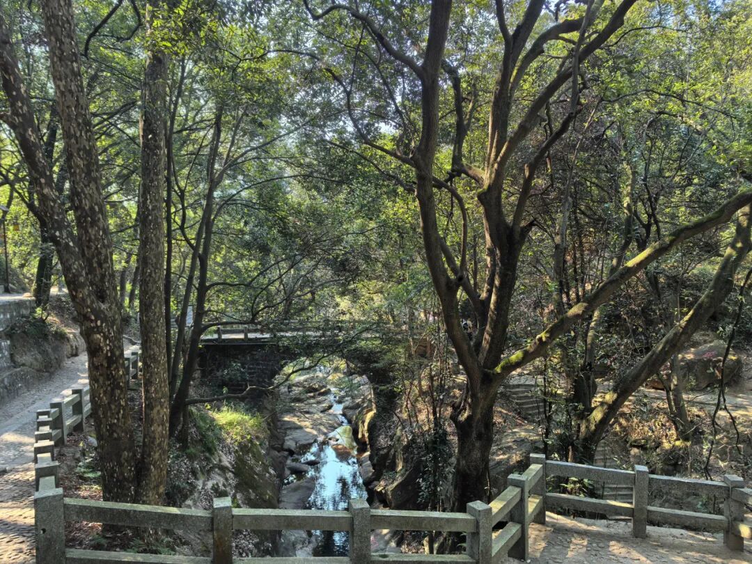 书院背靠庐山五老峰,四山环合,清幽深邃,树木高大且茂密,旁边有一条贯道溪,水不深,清可见底。想来当年书院学子们的琅琅书声,该是和这溪水声揉在一起的,读书声清亮,水声柔缓,真是治学修身、潜心问道的好地方。