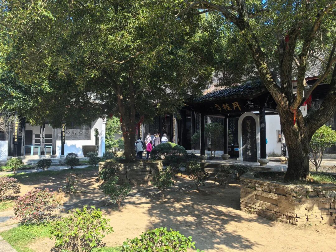 刚踏进先贤书院,浓郁的桂花香气便扑鼻而来。丹桂亭内,写有“紫阳手植丹桂”的石碑分外醒目,旁边的两株桂树枝繁叶茂,枝头缀满金黄的花瓣。工作人员解释,这两株桂树并非朱熹当年亲手所植的原株,南宋至今已近千年,原树早已湮没在历史变迁中。现在的桂树,是后人依据史料记载,特意挑选与宋代品种相近的丹桂补种的。可即便如此,人们仍愿在此立碑纪念,只因朱熹与白鹿洞书院的缘分,早已刻进了书院的每一寸土地,这桂树,是对他重兴书院之功的尊崇,也是对他学术精神的追慕。