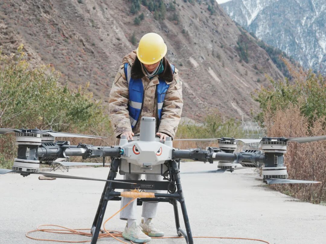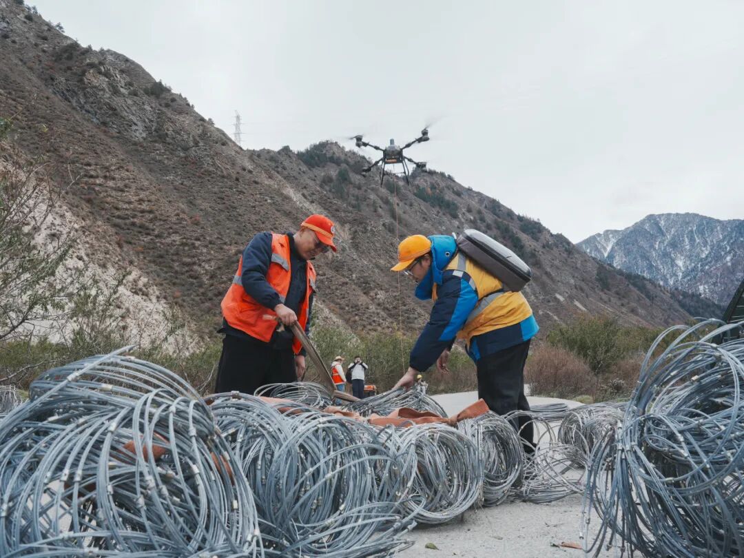 施工负责人表示:“无人机不仅解决材料上山难题,更重构了高原施工的逻辑,让人力专注于精准安装,让科技承担危险运输。”
