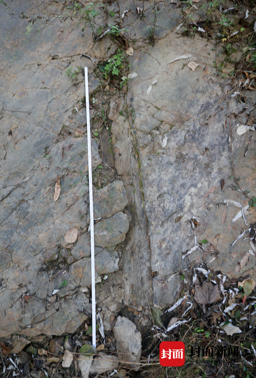 12月5日,邢立达站在岩壁旁指着一处爪印痕迹介绍:“三个趾头踩进淤泥的形变还清晰可见,泥土被压下去又挤出来,里面的填充物都没完全剥离。”