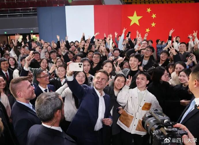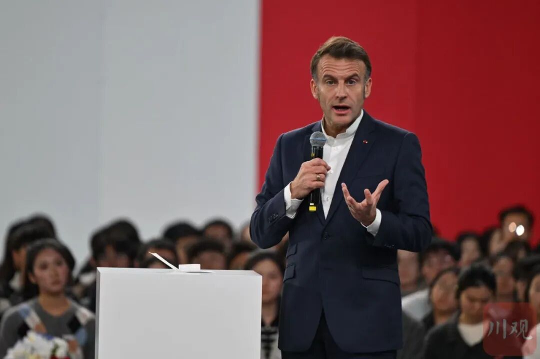 马克龙在四川大学演讲时表示,“好的旅行,总是那种让你离开时还想再来,而且觉得还没看够的旅行,这恰恰是我此刻的感受。”