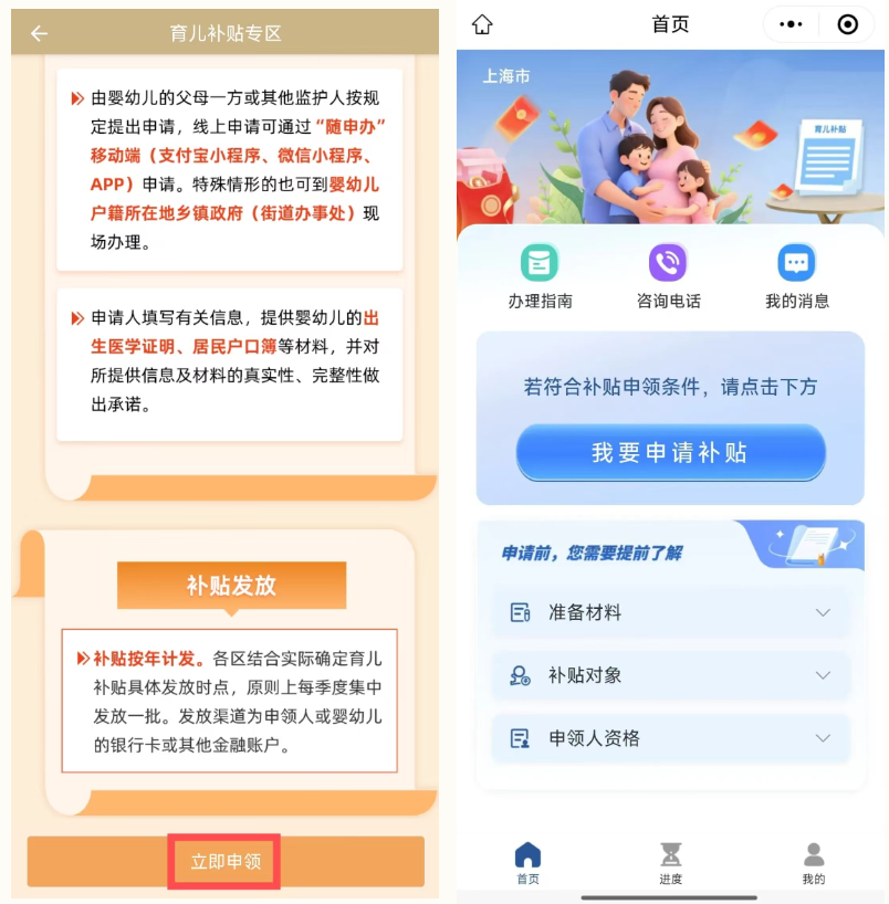 如今,育儿补贴申领已经全面开放。宝爸宝妈们可通过“随申办市民云”APP线上申领,一起来看看详细指南~