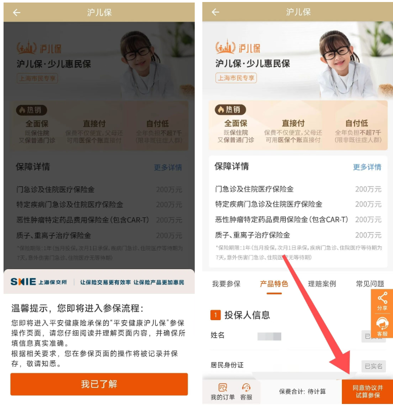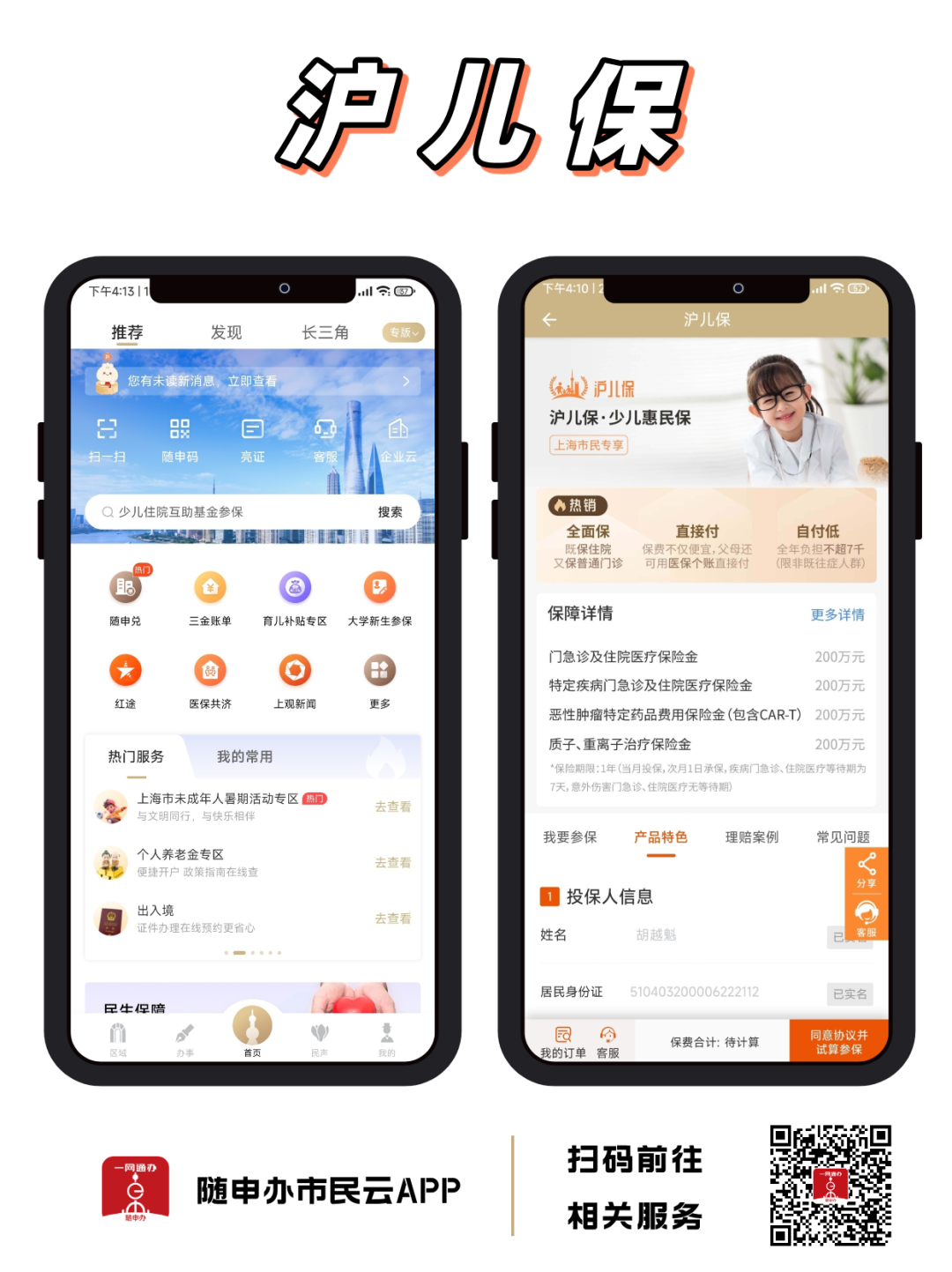 “沪儿保”医疗险紧密衔接上海市社会医疗保险的普惠型补充医疗保险,以普惠的价格提供门诊和住院医疗费用、特定高额药品及质子重离子医疗费用保障。
