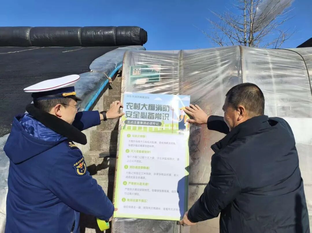 冬季大棚火灾风险上升,近日,丹东市消防救援支队深入农村大棚集中区域,开展专项防火宣传活动,筑牢农业生产安全防线。