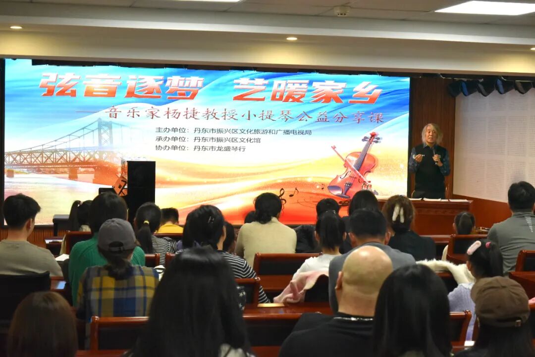 12月6日,由振兴区文化旅游和广播电视局主办、振兴区文化馆承办、丹东龙盛琴行协办的公益小提琴分享课,在振兴区文化馆举行。著名小提琴家、指挥家、音乐教育家杨捷教授载誉归乡,为广大小提琴爱好者带来了一场兼具深度与实用性的音乐盛宴。