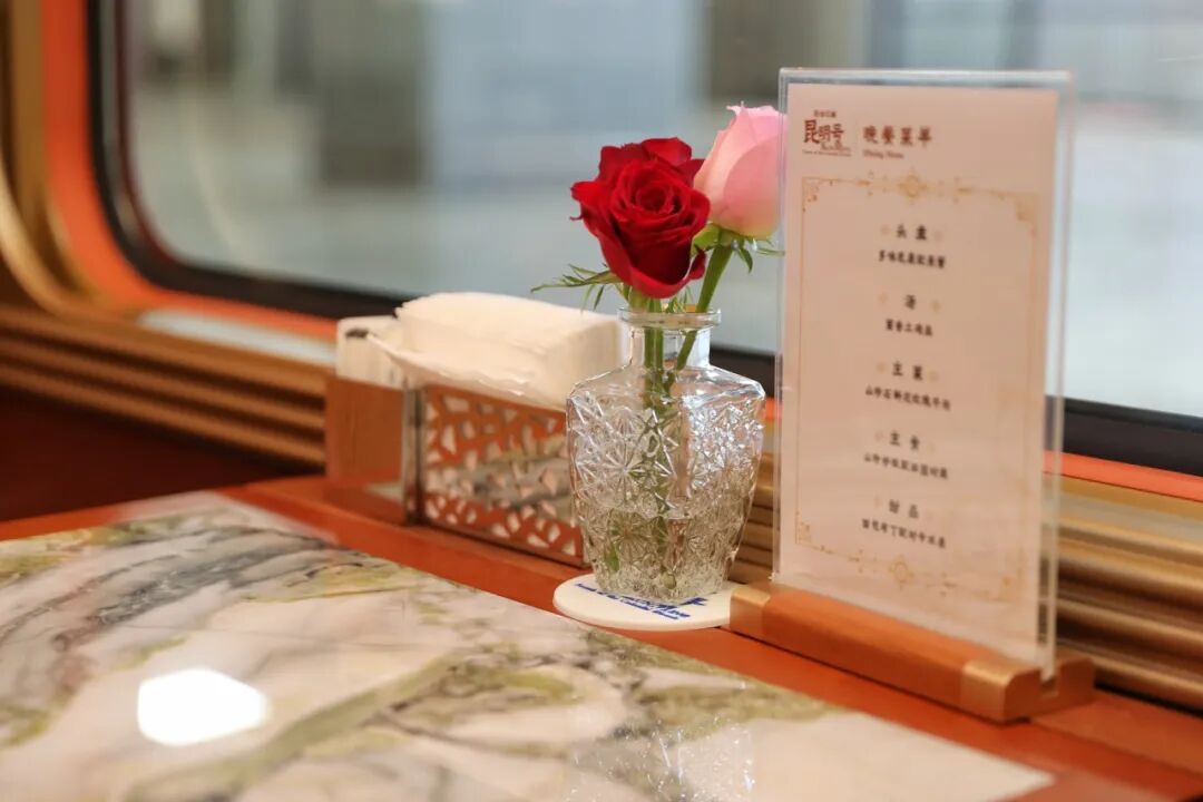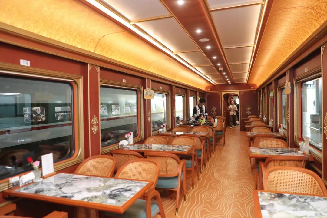 餐车共设54个专属餐位,提供多元化餐饮选择。列车工作人员会提前收集旅客饮食需求,为旅客定制旅途餐食。