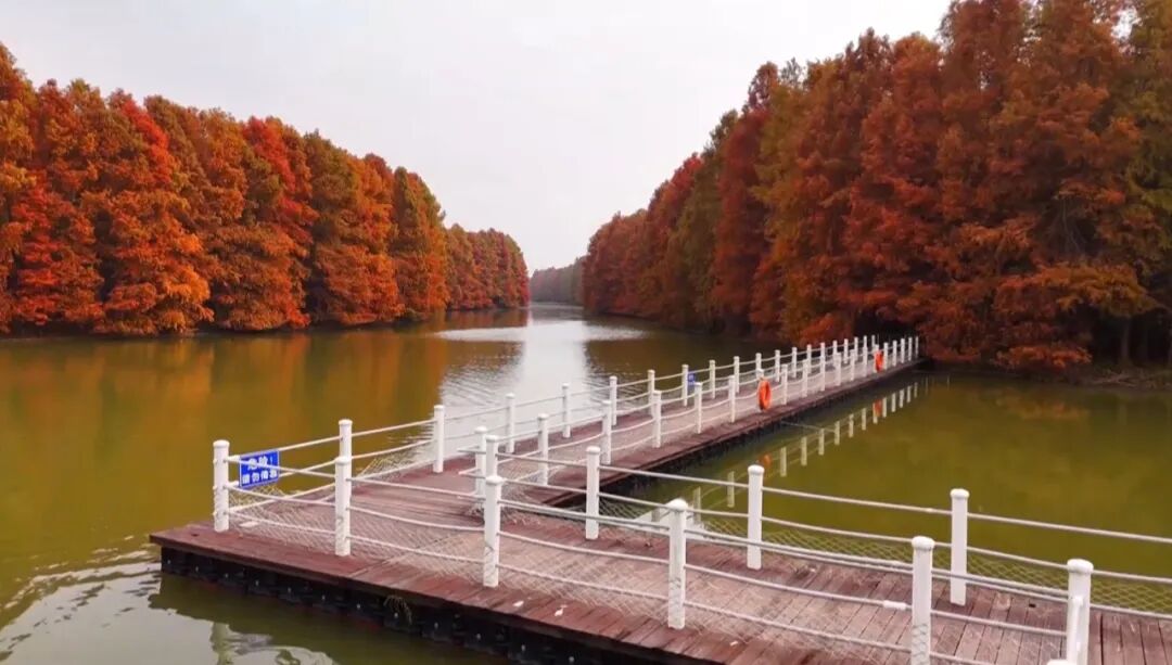 初冬的暖阳下,上海海湾国家森林公园的“调色盘”仿佛被瞬间打翻——20余万株杉树由绿转黄,再浸染为深红与赭石,构成一幅绵延壮阔的立体油画。这片距离市区仅约一小时车程的森林,已进入一年中最绚烂的时刻。