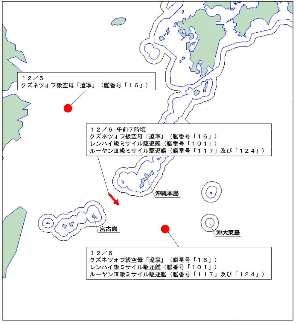6日晚些时候,日本方面确认,上述辽宁舰航母编队在冲绳县冲大东岛以西约270公里的公海海域航行,且辽宁舰进行了舰载战斗机及舰载直升机的起降作业。