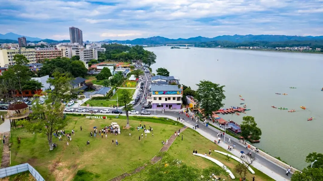 龙川县以“古邑新川”与“东江水韵”双带并进:一边保护开发佗城古城,高标准建设龙川新城,推动城郊融合;一边依托东江生态基底,打造东江湿地公园、园福坝创客部落特色节点,吸引青年返乡、创客集聚。