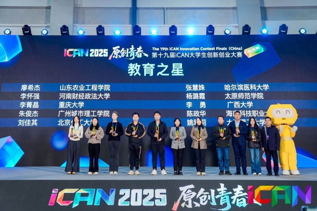 在比赛同期,还举办了iCAN创新论坛、iCANLab年度嘉年华、AI工作坊等专题活动。创新创业学院姚翠莉老师因指导学生取得竞赛优秀成绩及《创新创业工程实践》系列课程教学成果,获得2025年度“iCAN教育之星”称号。