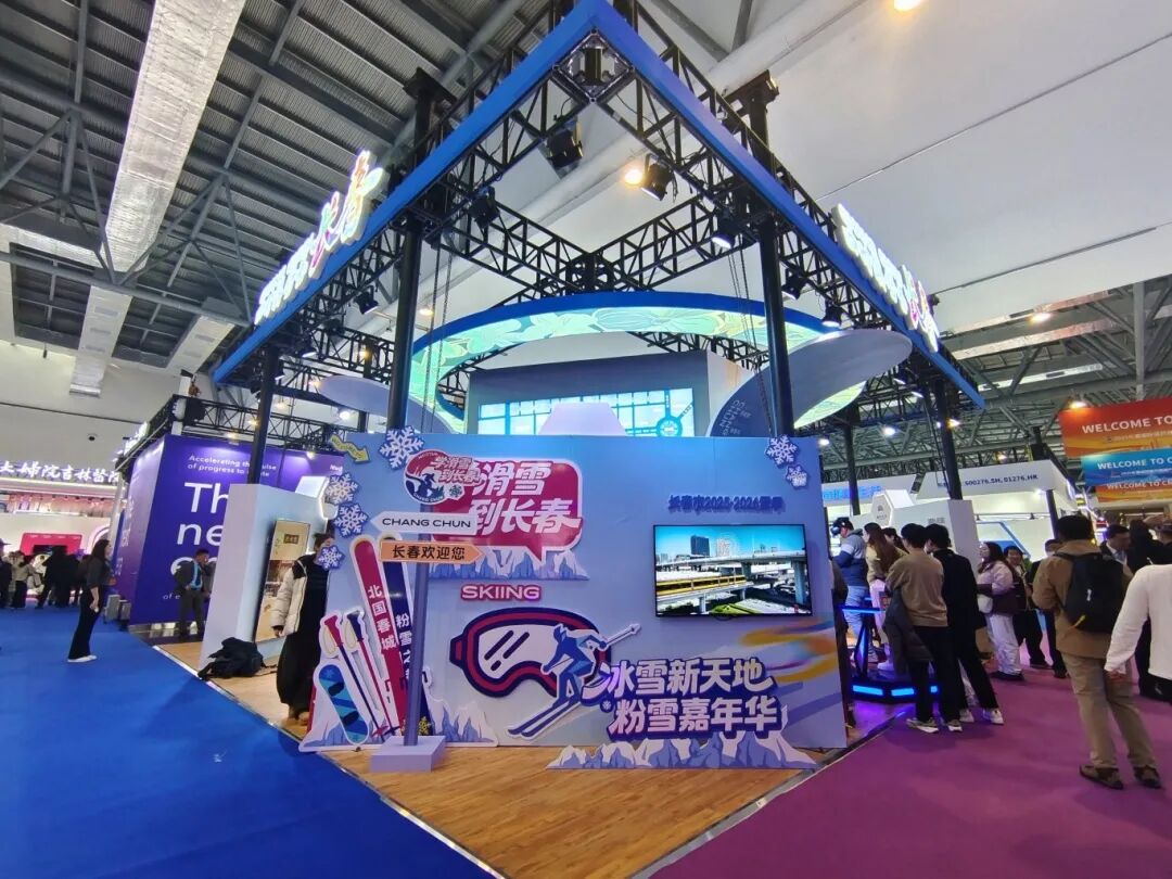展厅内,长春市文广旅局牵头整合长春文旅集团、国色天莲、净月潭、长春礼物、长春北湖悦榕鸿居酒店等核心主体,构建起“政府搭台、企业唱戏”的联动机制,同时,2025-2026雪季冰雪旅游“一心两园六场”核心产品体系的直观展陈,与各参展商的特色成果形成呼应,共同勾勒出长春“文旅+健康”的多元生态图景。
