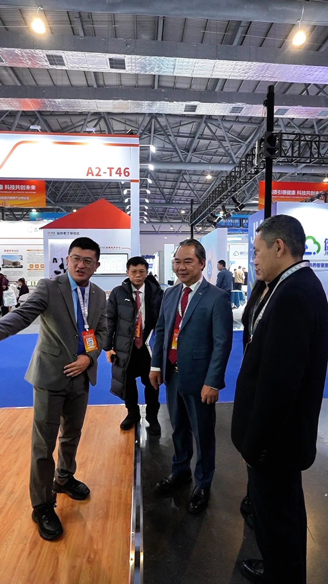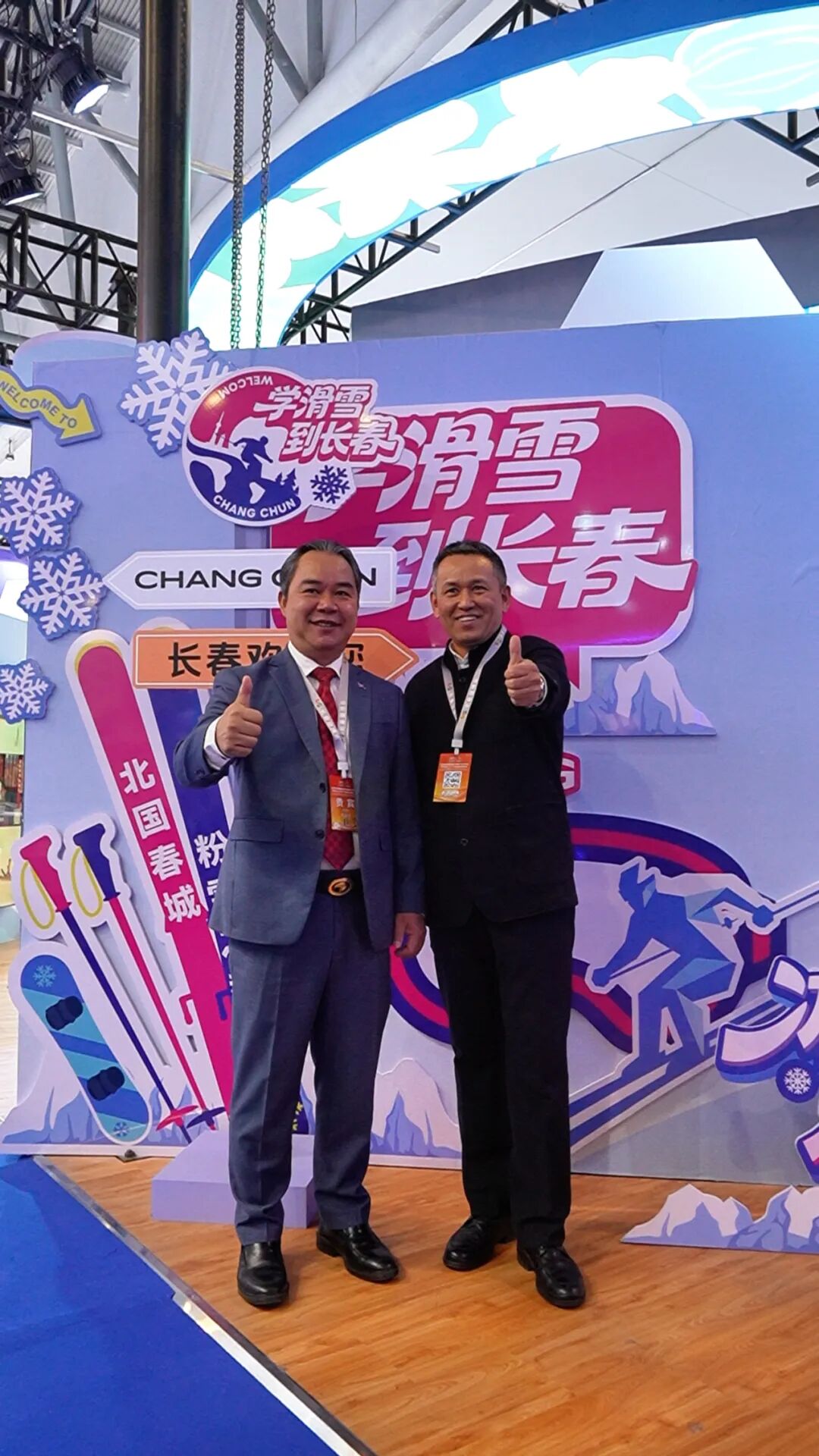 展会期间,长春文旅展厅也吸引了国际嘉宾的关注。柬埔寨农林渔业部副部长唐汉峰(H.E. Ky Chanromdoul)一行专程来到展位参观。长春文旅展厅相关负责人围绕“生态康养+文化赋能”这一核心主题,重点介绍了“一心两园六场”冰雪旅游产品体系等亮点内容。在听取讲解和交流中,唐汉峰不仅对展厅兼具文化底蕴与沉浸体验的整体设计、丰富多元的展示内容表现出浓厚兴趣,更对长春文旅与冰雪产业深度融合的发展成果给予高度肯定。
