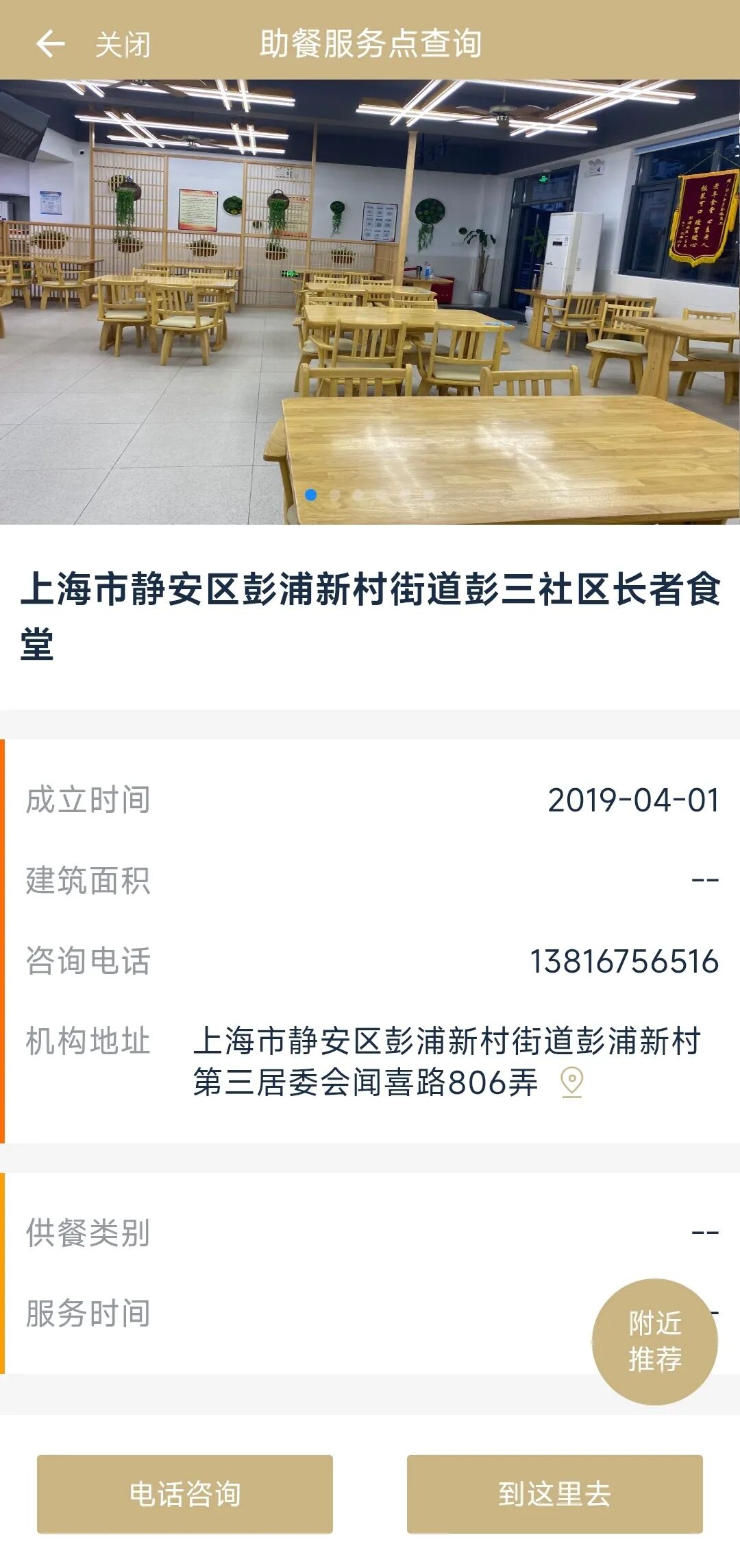 点击对应机构卡片,即可查看电话、食堂照片等详细信息。
