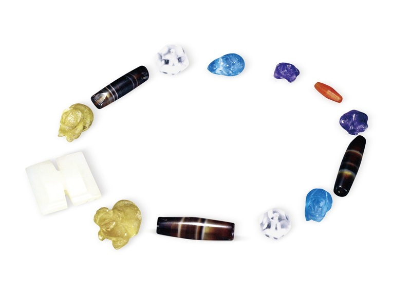 新莽时期微雕杂宝项饰(江苏盱眙金马高速30号墓出土),由琉璃、水晶、玛瑙组成,色彩多样,或许便是汉晋人所认知的“十种流离”