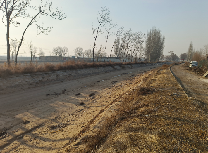 沿着渠岸向下游行进了一百多米