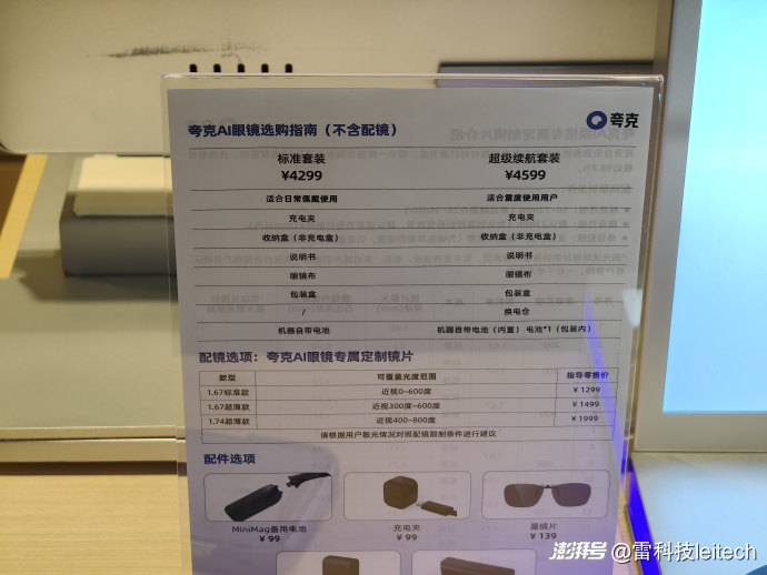 与此同时,夸克 S1 的专属定制镜片的价格门槛也不低,起步 1.67 标准款就要 1299 元,折射率 1.74 更是要到 1999 元。
