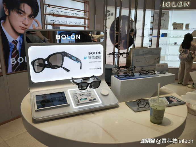 相比之下,正佳广场的「AI 眼镜味」就浓了很多,这里的宝岛眼镜就展示了小米 AI 眼镜,以及 Rokid 与 BOLON 共同打造的 BOLON AI 智能眼镜。隔壁还有一家 BOLON 品牌店,也不意外地展示了最新的 BOLON AI 智能眼镜。