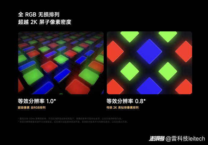 而RGB-OLED就是那个突破口。RGB-OLED解决最核心的痛点就是清晰度,把“虚标分辨率”拉回真实世界,它的每一个像素都是真实独立的 RGB 子像素,文字更锐、线条更稳、色彩边界更清晰。在RGB-OLED的加持下,厂商们也不需要盲目追逐2K分辨率,减少屏幕功耗的同时,还能保持清晰度。