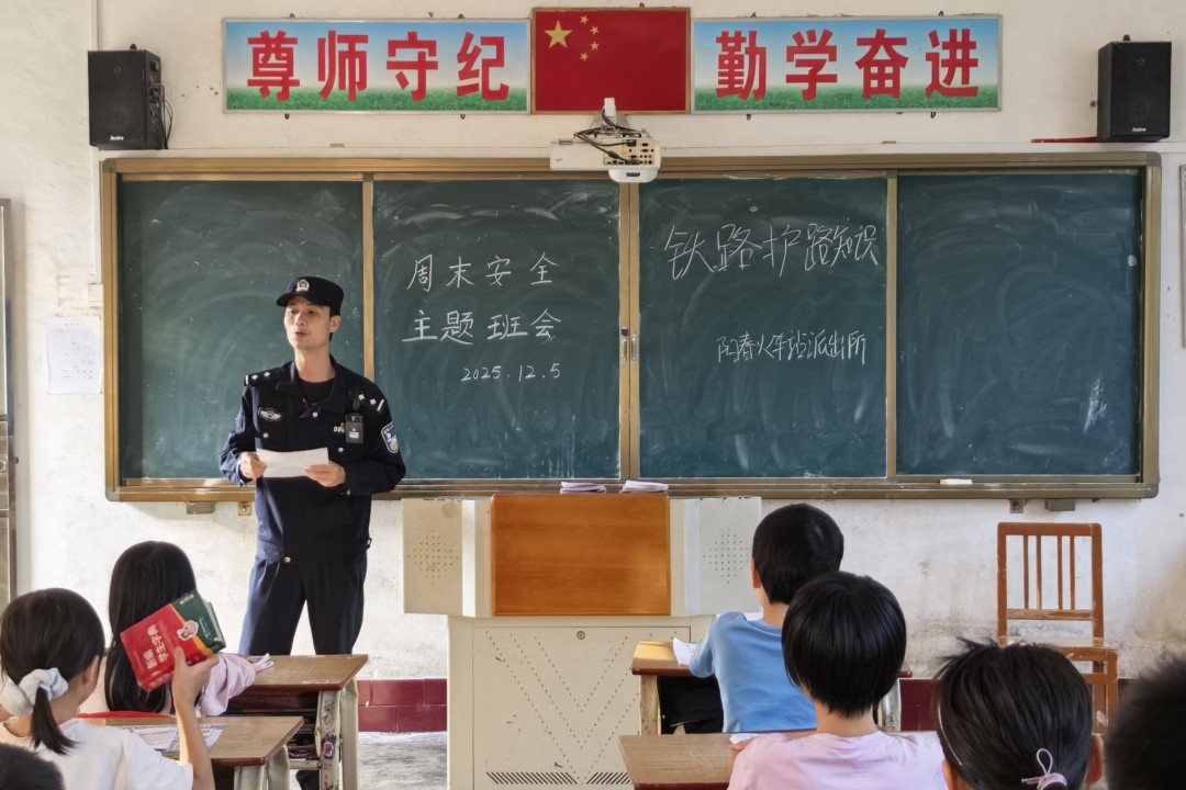 为让铁路安全知识走进群众,佛山站派出所民警因地制宜采用“挂图贴画学习、走村串巷讲解、喇叭广播宣传、发放宣传资料”等多样化形式,通过发放宣传单张与作业本、张贴宣传挂图、播报宣传词、播放宣传片等举措,在社区广场搭建咨询台,以互动问答、隐患展示等形式,解答线路防护、安全距离等疑问,累计覆盖居民2000余人次;针对青少年群体,宣传小分队走进沿线中小学,播放安全警示动画、演示应急处置方法,帮助学生筑牢安全防护意识。